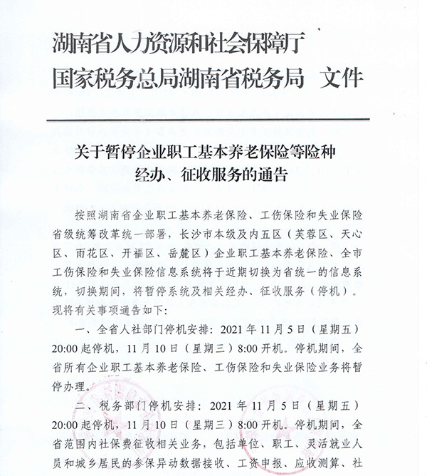關(guān)于暫停企業(yè)職工基本養(yǎng)老保險等險種 經(jīng)辦、征收服務的通告